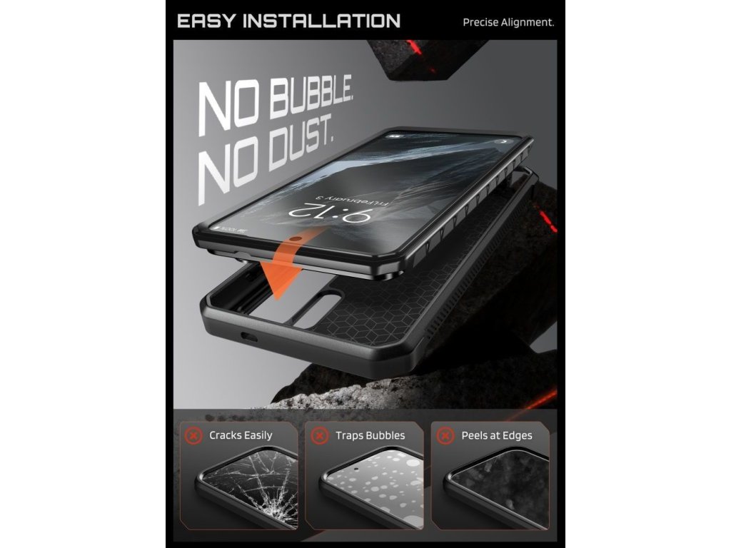 Zvýšené okraje kolem obrazovky a fotoaparátu poskytují dodatečnou ochranu proti poškrábání při dotyku s povrchy. Přesné výřezy a responzivní tlačítka zajišťují plný přístup ke všem funkcím telefonu. Aramidová povrchová úprava dodává zařízení luxusní, technický vzhled s výraznou texturou.