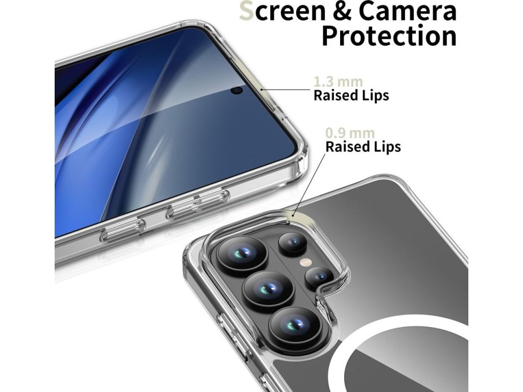 Vestavěný magnetický kroužek umožňuje bezdrátové nabíjení a stabilní připojení k nabíječkám, držákům a peněženkám MagSafe bez nutnosti sundávat pouzdro. Magnety bezpečně drží příslušenství a zajišťují tak bezpečné uchycení v každé situaci. Dvouvrstvá struktura účinně absorbuje energii nárazu a snižuje tak riziko poškození telefonu v případě pádu. Zvýšené okraje kolem obrazovky a kopule fotoaparátu chrání displej a čočky před kontaktem s rovnými povrchy.