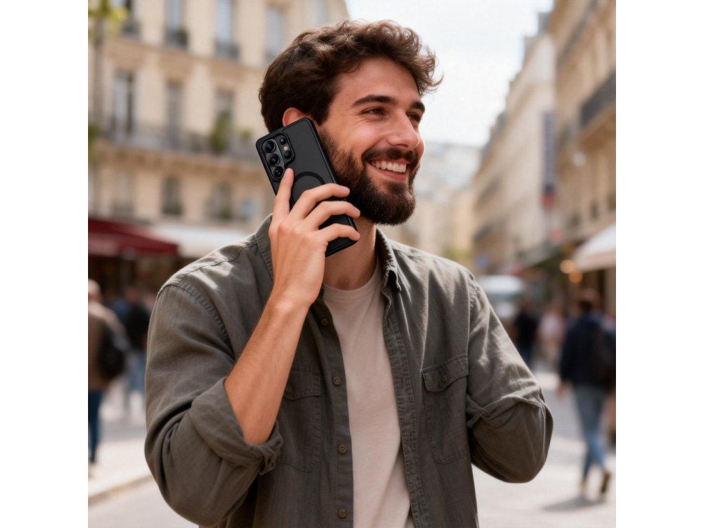 Vyvýšený design kolem fotoaparátu a obrazovky chrání nejcitlivější prvky před kontaktem s rovnými povrchy. Vestavěný magnetický kroužek zajišťuje plnou kompatibilitu s technologií MagSafe, která umožňuje rychlé bezdrátové nabíjení a používání magnetického příslušenství. Přesné výřezy zaručují plný přístup ke všem portům, tlačítkům a reproduktorům.