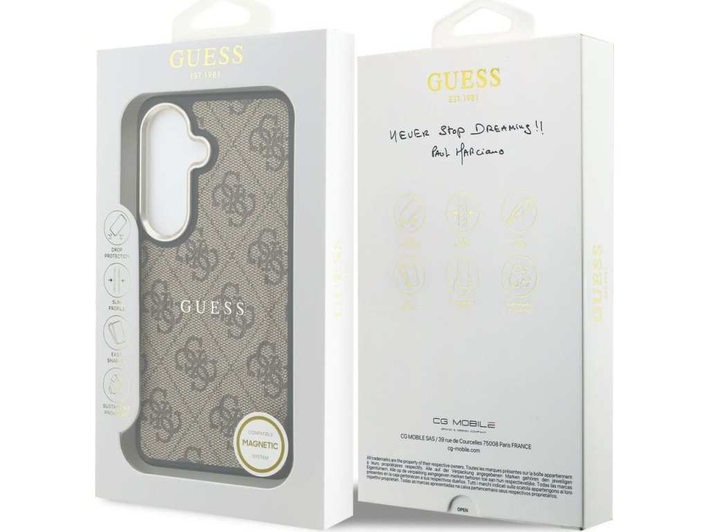 Guess PU Leather 4G Gold Frame Magnetic Zadní Kryt pro Samsung Galaxy S26 Brown