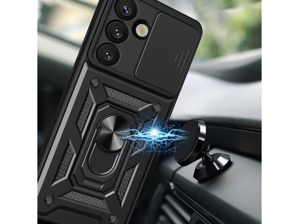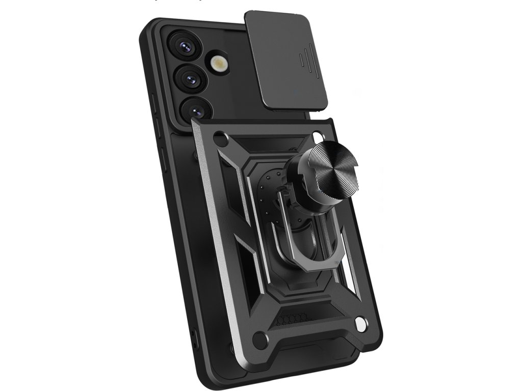 Hybrid Armor Camshield je robustní pouzdro navržené pro efektivní ochranu Samsungu Galaxy S26 při každodenním používání. Jeho zesílená konstrukce z dvou materiálů chrání smartphone před poškrábáním a pády. Integrovaný kryt fotoaparátu chrání čočky, když se nepoužívá, a snižuje tak kontakt s prachem a dalšími nečistotami. Kovový kroužek zlepšuje úchop a lze jej použít jako stojánek. Tato praktická kombinace ochrany a funkčnosti usnadňuje každodenní používání.