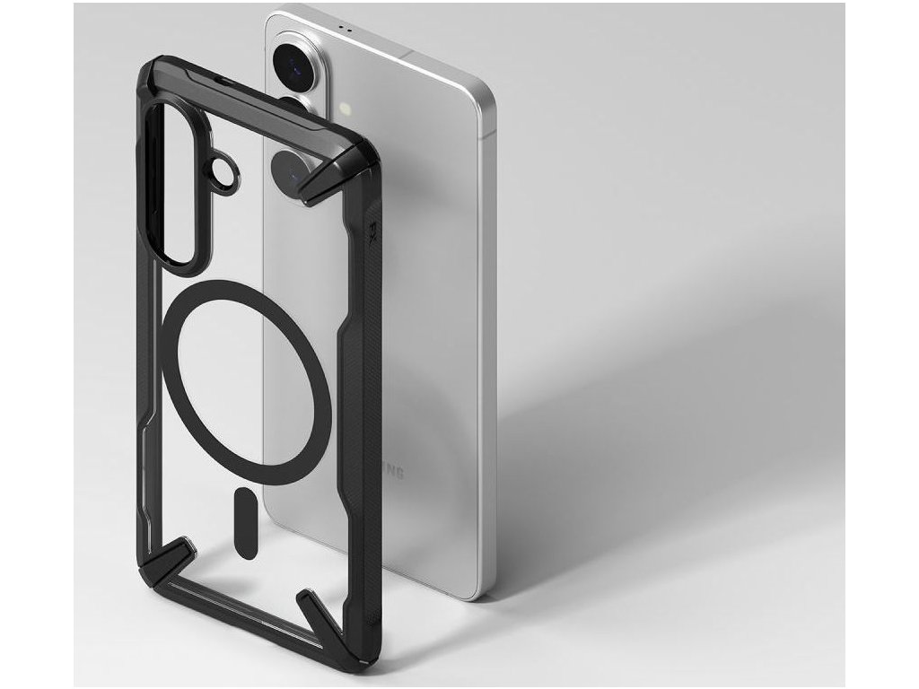 Ringke Fusion X Magnetic MagSafe je zesílený hybridní kryt, který kombinuje maximální ochranu s funkcí MagSafe. Je vyroben ze dvou vrstev – flexibilního termopolyuretanu (TPU) a tvrdého polykarbonátu (PC) – a poskytuje účinnou ochranu před pády a poškozením. Vestavěný magnetický kroužek umožňuje stabilní uchycení příslušenství MagSafe a rychlé bezdrátové nabíjení. Černý rámeček kontrastuje s průhlednou zadní stranou, vytváří sportovní vzhled a zdůrazňuje jedinečný design telefonu.