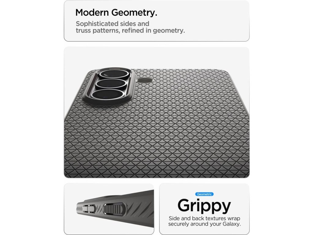 Spigen Liquid Air Mag je tenké pouzdro s vestavěnými magnety MagSafe, které kombinuje minimalistický design se spolehlivou ochranou. Jeho matný, texturovaný povrch s výrazným geometrickým vzorem poskytuje bezpečný a protiskluzový úchop a dodává pouzdru moderní vzhled, který ho odlišuje od standardních hladkých pouzder.