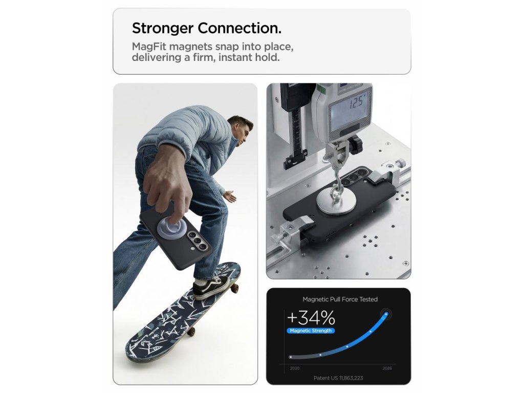 Vestavěný magnetický kroužek kompatibilní s technologií MagSafe zajišťuje maximální účinnost bezdrátového nabíjení a rychlé a snadné připojení ke všemu příslušenství MagSafe. Magnety zajišťují stabilní uchycení nabíječek a příslušenství bez nutnosti sundávat pouzdro, což používání telefonu ještě více usnadňuje. Přesné výřezy poskytují plný přístup ke všem portům, tlačítkům a funkcím zařízení.