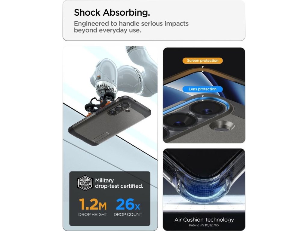 Prémiové příslušenství od značky Spigen vám zaručí opravdu kvalitní ochranu pro váš telefon. Spigen se zaměřuje na výrobu odolných obalů s armádními atesty pro maximální ochranu telefonu při pádu. Zaručená kvalita, kterou ověřili již stovky tisíc zákazníků po celém světě.