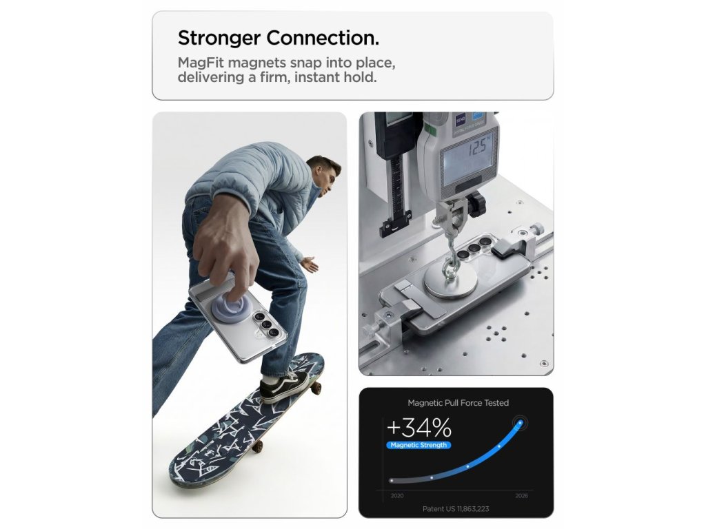 Vestavěný skládací stojan umožňuje pohodlné umístění telefonu v orientaci na šířku, což je ideální pro sledování filmů nebo televizních pořadů, videokonference nebo procházení obsahu, aniž byste museli zařízení držet v ruce. Stojan je diskrétně integrován do pouzdra a neovlivňuje štíhlý profil pouzdra, zatímco jeho pevná konstrukce poskytuje telefonu stabilní oporu.