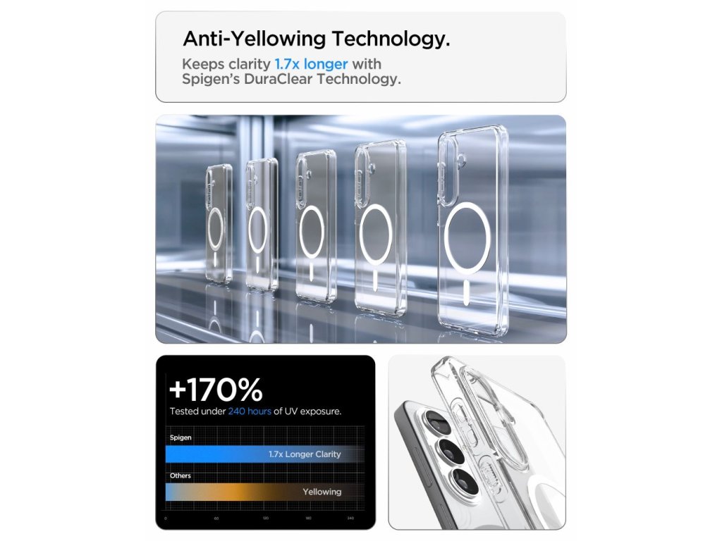 Kryt Spigen Ultra Hybrid Mag MagSafe je dokonalou kombinací estetiky, funkčnosti a moderní magnetické technologie. Jeho hybridní design poskytuje spolehlivou ochranu a zároveň nabízí plnou kompatibilitu s příslušenstvím MagSafe a zachovává původní design smartphonu.