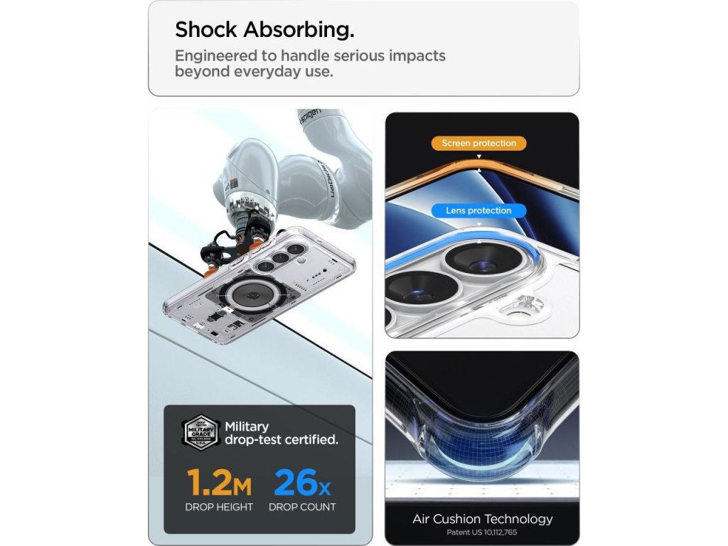 Zesílené rohy jsou vybaveny technologií Air Cushion, která pomáhá absorbovat energii nárazu při pádu. Právě rohy telefonu bývají při nehodách nejvíce zatěžované, a proto jejich dodatečná ochrana výrazně přispívá k celkové bezpečnosti zařízení.
