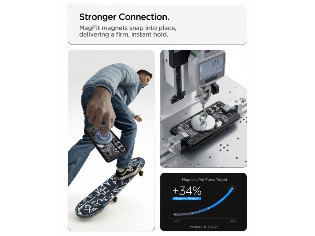 Kryt Spigen Ultra Hybrid Mag MagSafe je dokonalou kombinací estetiky, funkčnosti a moderní magnetické technologie. Jeho hybridní design poskytuje spolehlivou ochranu a zároveň nabízí plnou kompatibilitu s příslušenstvím MagSafe a zachovává původní design smartphonu.