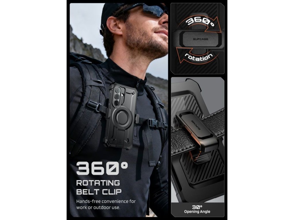 Součástí balení je také otočný klip na opasek, který umožňuje bezpečné nošení telefonu bez nutnosti mít jej v kapse. To oceníte zejména při práci, pohybu v terénu, turistice nebo jiných aktivitách, kde potřebujete mít telefon rychle dostupný.