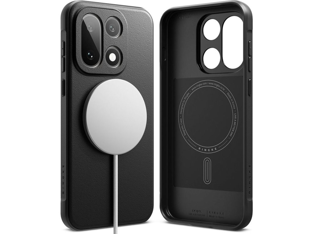Pouzdro Onyx Magnetic Magsafe od značky Ringke je vyrobeno z měkkého a odolného termoplastu, který je na okrajích dodatečně zesílen pro optimální ochranu zařízení. Mírně vyvýšený design kolem fotoaparátu a obrazovky je chrání před poškrábáním tím, že telefon zvedá těsně nad rovný povrch. Je vybaveno kryty tlačítek, výřezy pro porty a poutkem na šňůrku.