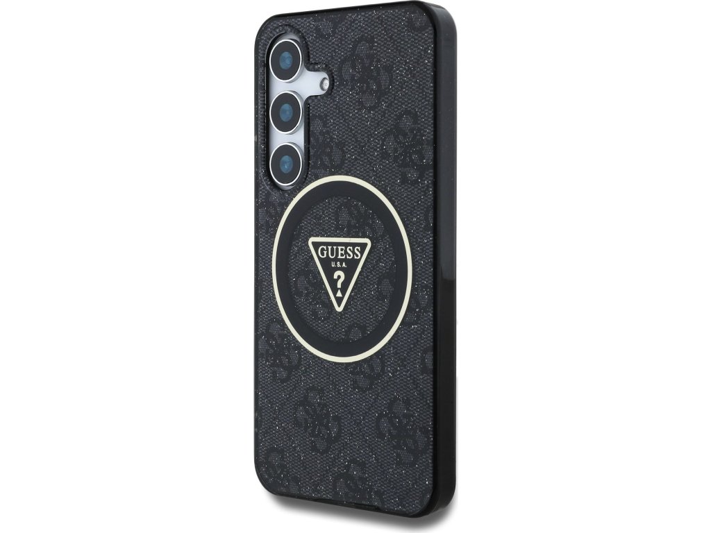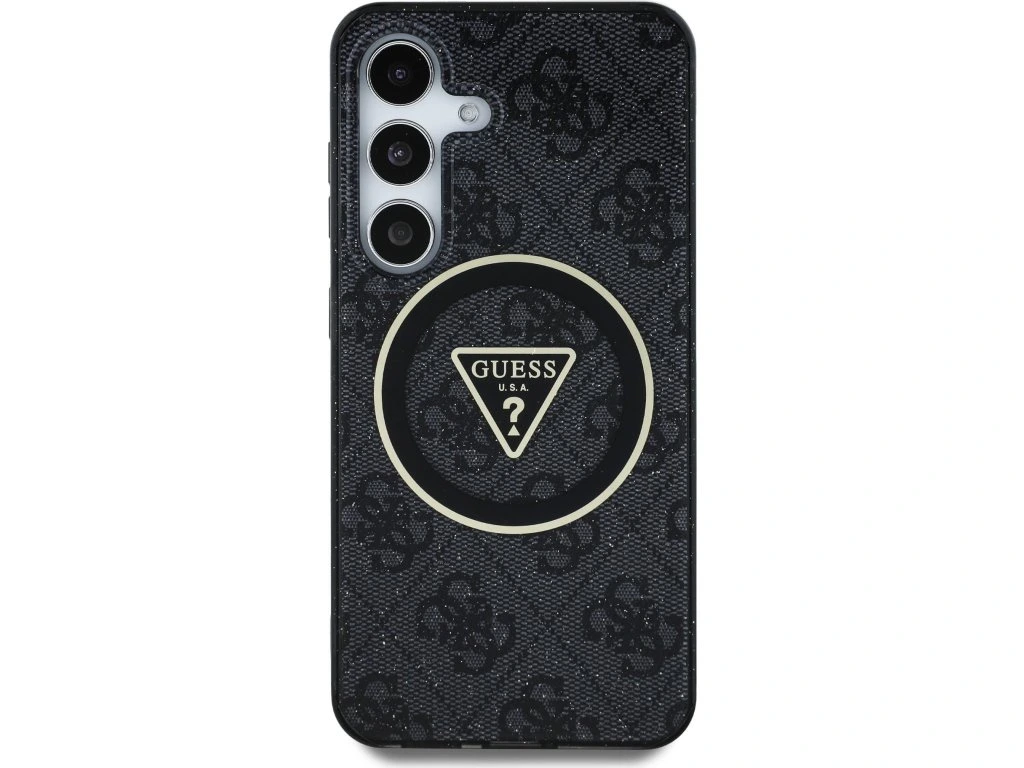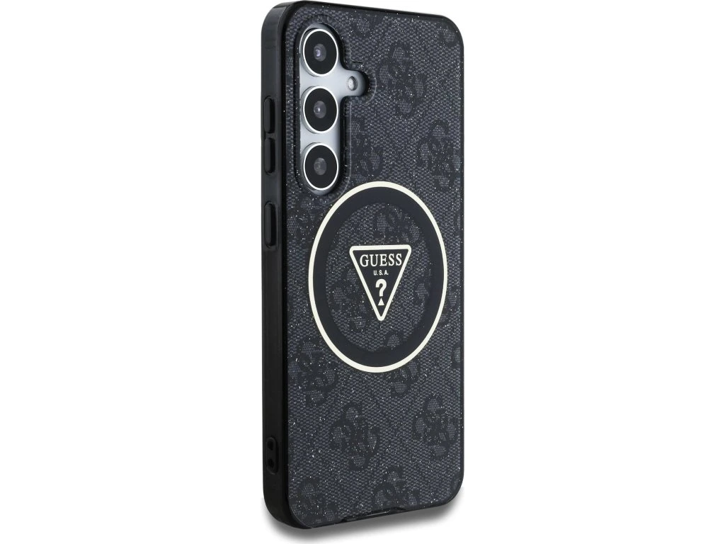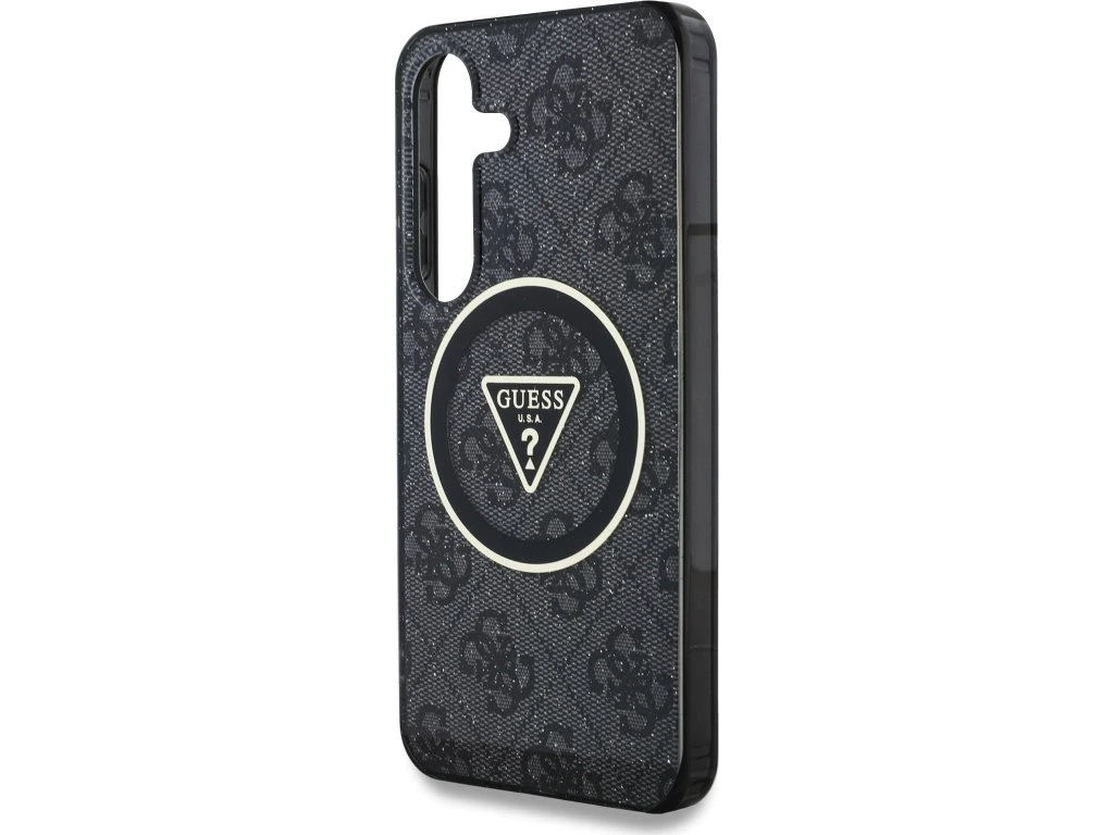 Guess IML 4G Glitter and Triangle Logo MagSafe Zadní Kryt pro Samsung Galaxy S25+ Black