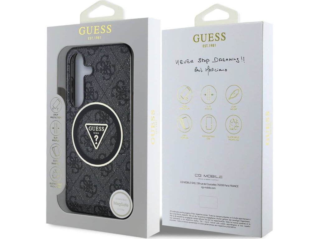 Guess IML 4G Glitter and Triangle Logo MagSafe zadní kryt na telefon je skvělým doplňkem pro všechny milovníky stylu a praktičnosti. Tento kryt je vyroben z kombinace pevného PC plastu na zadní straně a TPU měkkého plastu na bocích, což vytváří dokonalou symbiózu odolnosti a pohodlí. Díky přesnému tvaru perfektně sedí na telefonu a umožňuje snadný přístup ke všem tlačítkům a konektorům. Tento kryt podporuje technologii MagSafe, což znamená, že je kompatibilní s bezdrátovým nabíjením a dalšími MagSafe doplňky. Design krytu vyniká triangle logem Guess ve zlatém kruhu a motivem 4G s jemnými třpytky na pozadí, což z něj činí nejen praktický, ale i stylový doplněk, který skvěle doplní váš outfit. Pokud hledáte kryt, který kombinuje eleganci a funkčnost, je tento kousek od GUESS tou pravou volbou pro vás. Klíčové vlastnosti: - Originál Guess - Lehký a odolný kryt z prémiového PC a TPU - Skvěle se drží v ruce a neklouže - Podpora MagSafe - Přesně kopíruje tvar telefonu a umožňuje snadný přístup k tlačítkům a konektorům. - Chrání telefon před prachem a poškrábáním - Stylový a funkční doplněk pro váš telefon i outfit