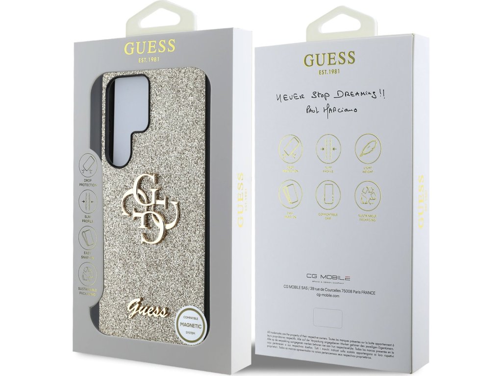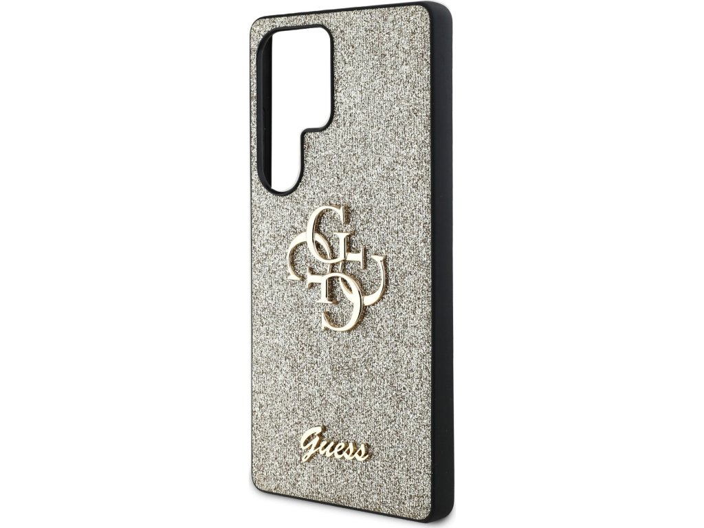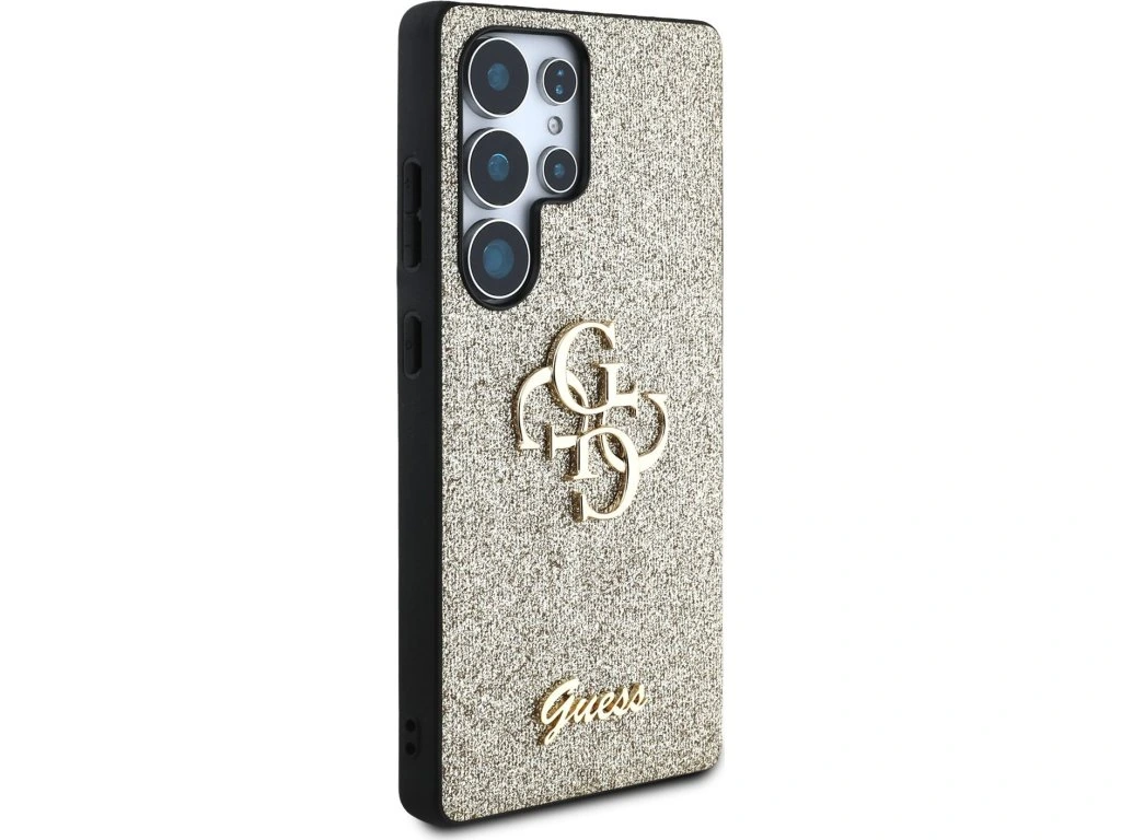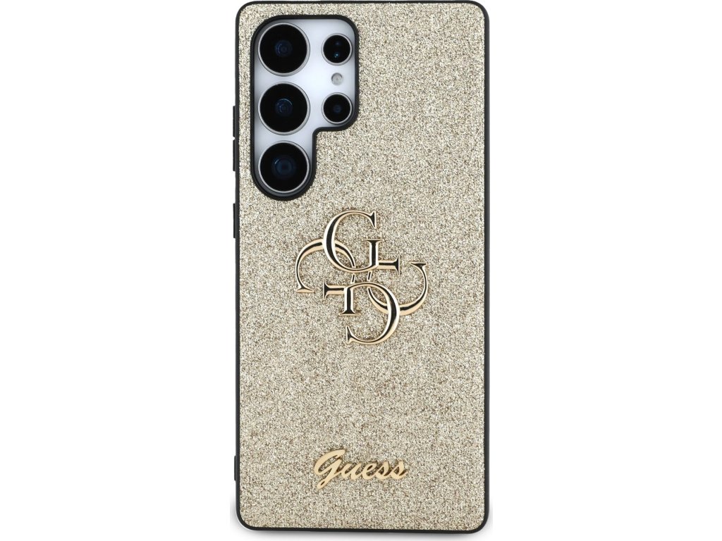 Guess PU Fixed Glitter 4G Metal Logo Zadní Kryt pro Samsung Galaxy S25 Ultra Gold