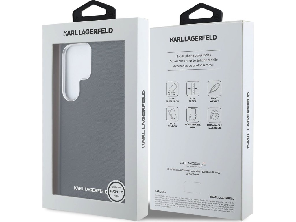Karl Lagerfeld PU Saffiano Metal Logo and Frame Zadní Kryt pro Samsung Galaxy S25 Ultra Black