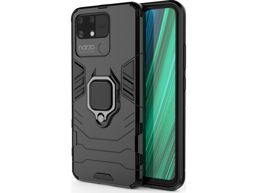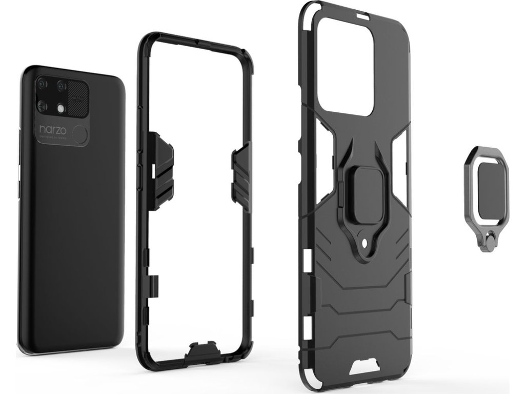 Odolný hybridní kryt Ring Armor + magnetický držák Realme Narzo 50A černý