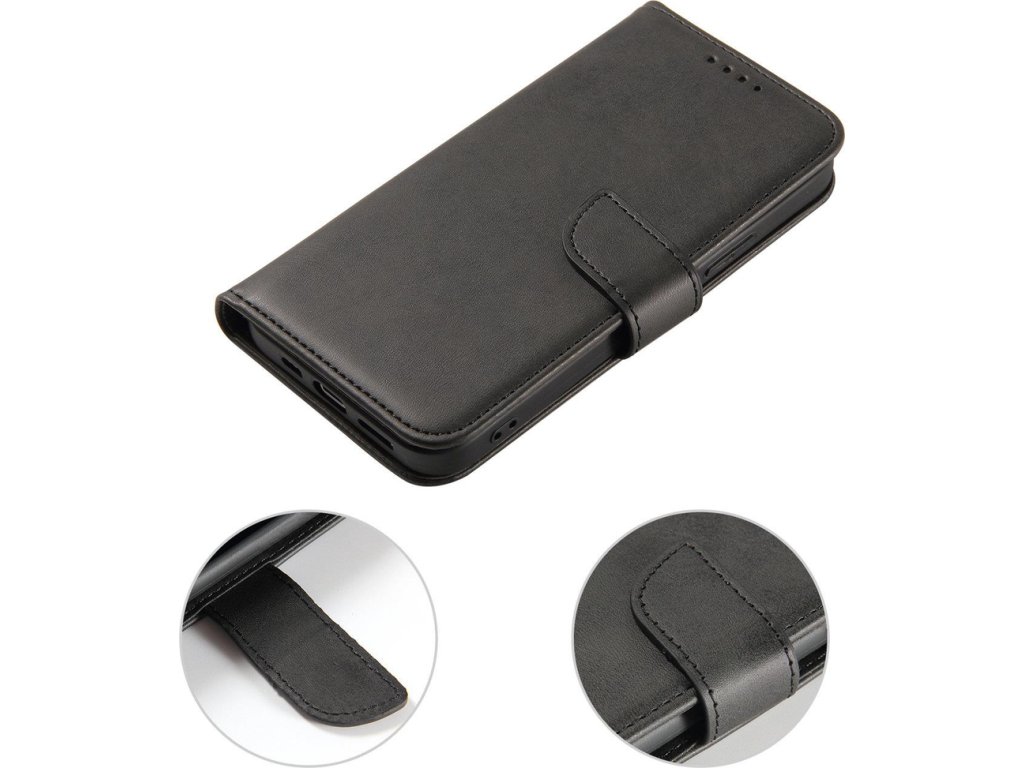 Flipové pouzdro Realme 10 Pro+ Magnet Case řady s funkcí peněženky a stojánkem v černé barvě
