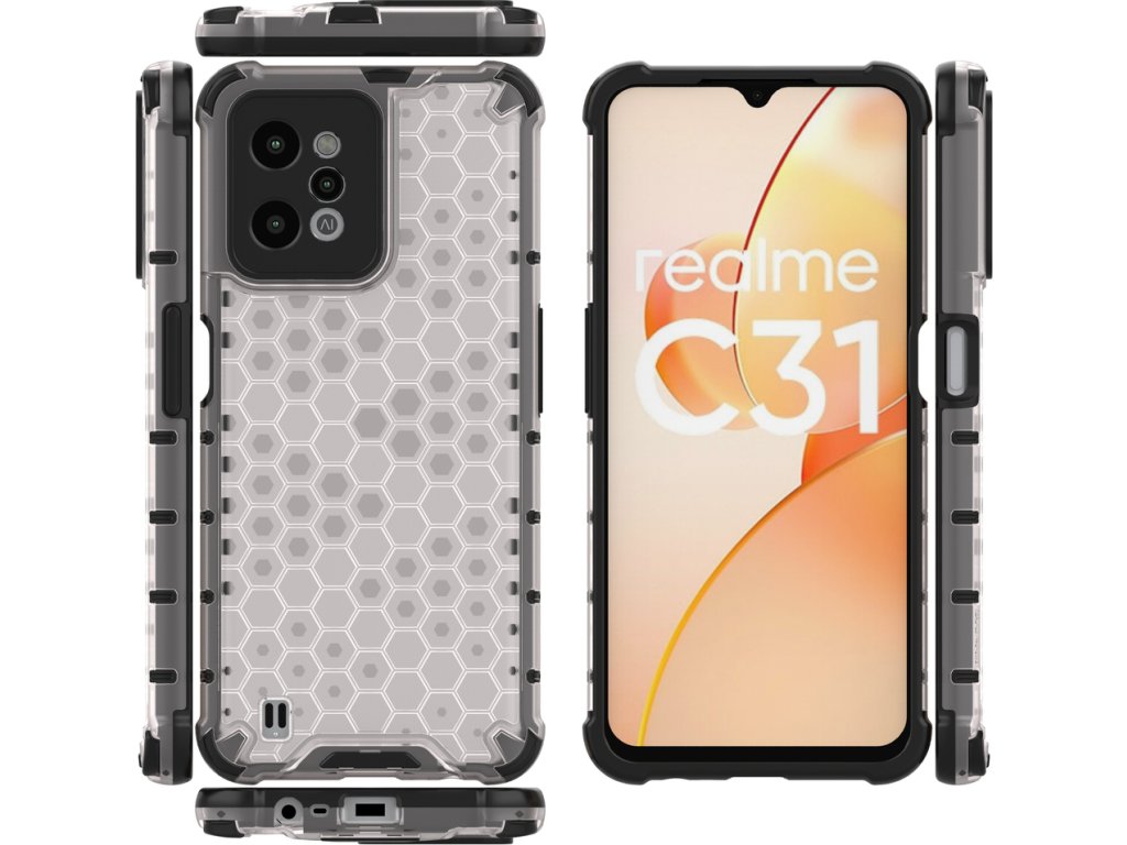 Průhledný pancéřový kryt s gelovým rámečkem Honeycomb pro Realme C31