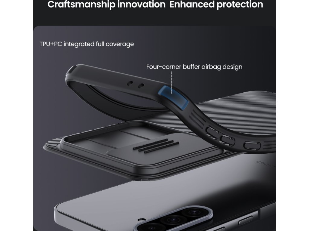 The Nillkin CamShield Pro case is the perfect protection for your phone. Thanks to air cushions in the corners, it effectively absorbs shocks, protecting the device from mechanical damage.