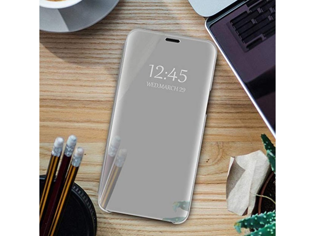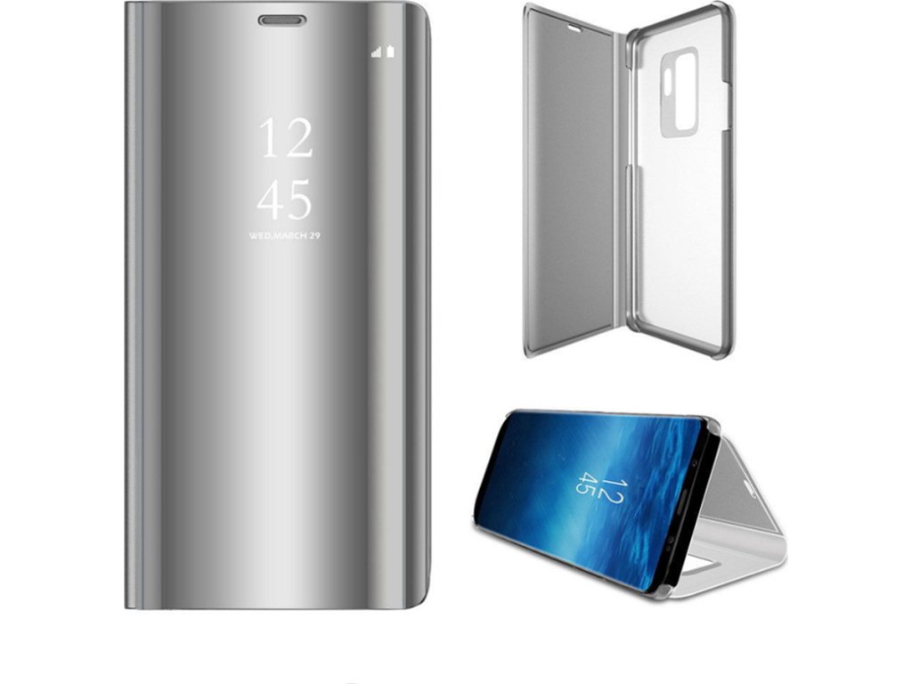 Pouzdro Smart Clear View pro Samsung Galaxy A14 4G / A14 5G stříbrný