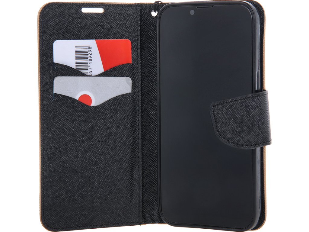 Knížkové pouzdro, zavírání na magnet, vnitřní silikonové pouzdro chránící smartphone před nárazy, 2x slot na platební kartu, úložný prostor na bankovky. Baleno v PE sáčku.