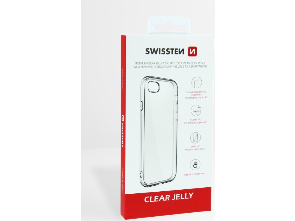 SWISSTEN Clear Jelly ochranné pouzdro, Průhledný design zachovává vzhled smartphone, Flexibilní nárazuvzdorný TPU materiál, Tenké a lehké provedení, Přesné výřezy pro tlačítka a konektory.