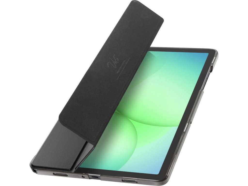 Vestavěný stojánek umožňuje pohodlné sledování, videokonference a psaní poznámek. Přesně vyřezané otvory zajišťují plný přístup ke všem portům, tlačítkům a fotoaparátům bez nutnosti sundávat pouzdro. Tenký profil zachovává minimalistický charakter tabletu, aniž by zbytečně zvyšoval jeho objem.