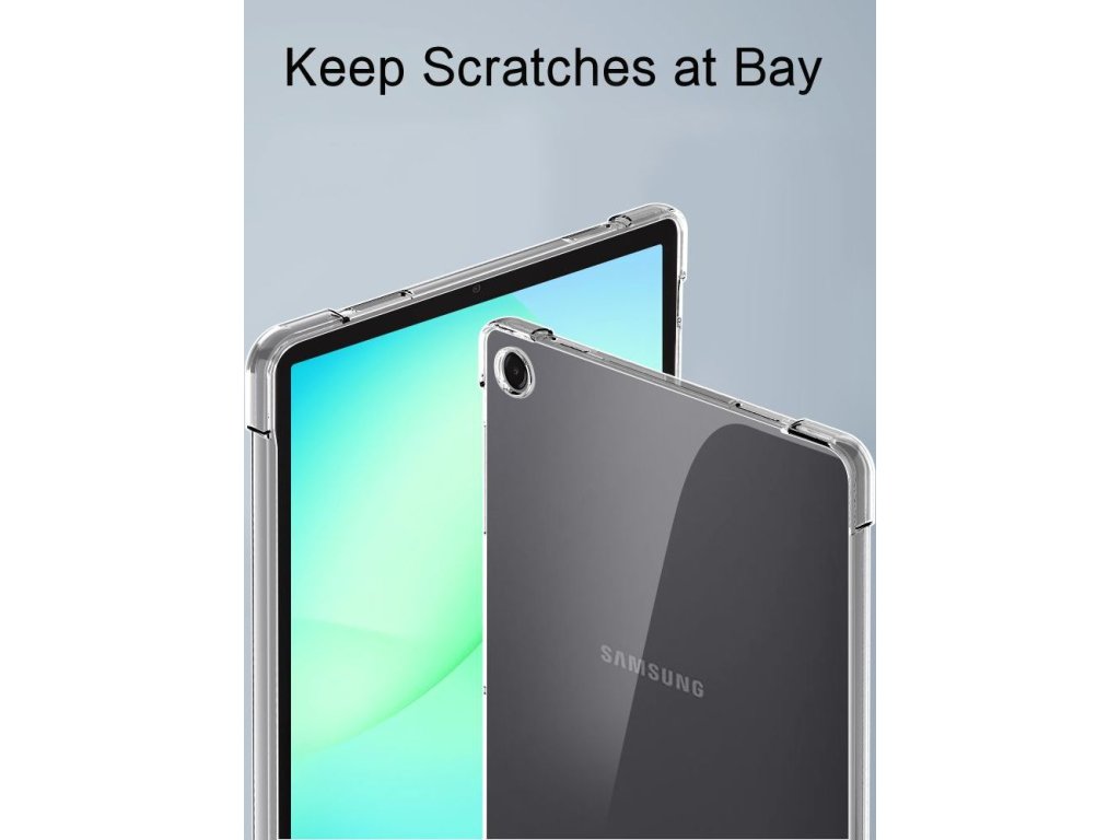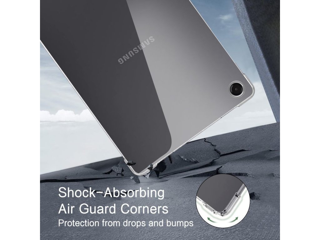 Pouzdro je vyrobeno z kombinace tvrdé, průhledné akrylové zadní strany a měkkého, flexibilního TPU rámu, což poskytuje vynikající ochranu před mechanickým poškozením a zároveň zachovává přirozený vzhled zařízení. Zesílené rohy účinně absorbují nárazy při pádech a chrání tak nejzranitelnější části tabletu.