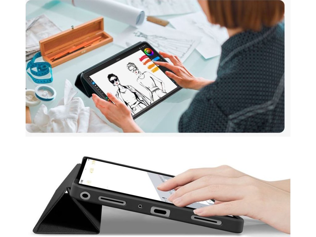 SmartCase nabízí nejen ochranu, ale i funkčnost. Pouzdro se snadno transformuje do praktického stojánku, který vám umožní pohodlně používat zařízení v různých konfiguracích – jak vertikálně, ideální pro videokonference nebo sledování filmů, tak horizontálně, což je ideální pro psaní, kreslení nebo práci se stylusem.