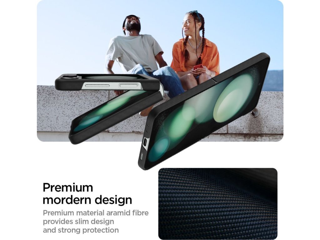 Hlavním znakem, kterým toto pouzdro vyniká, je konstrukce z vysoce kvalitního polykarbonátu zakončená aramidovým vláknem, která je nejen lehká, ale nabízí i mimořádnou odolnost. Dodatečná vrstva udržuje pouzdro čisté a odolné proti otiskům prstů.