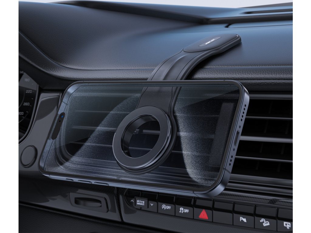 - Zajišťuje bezpečnost při řízení. Má vestavěné magnety, které snadno udrží telefon na místě.