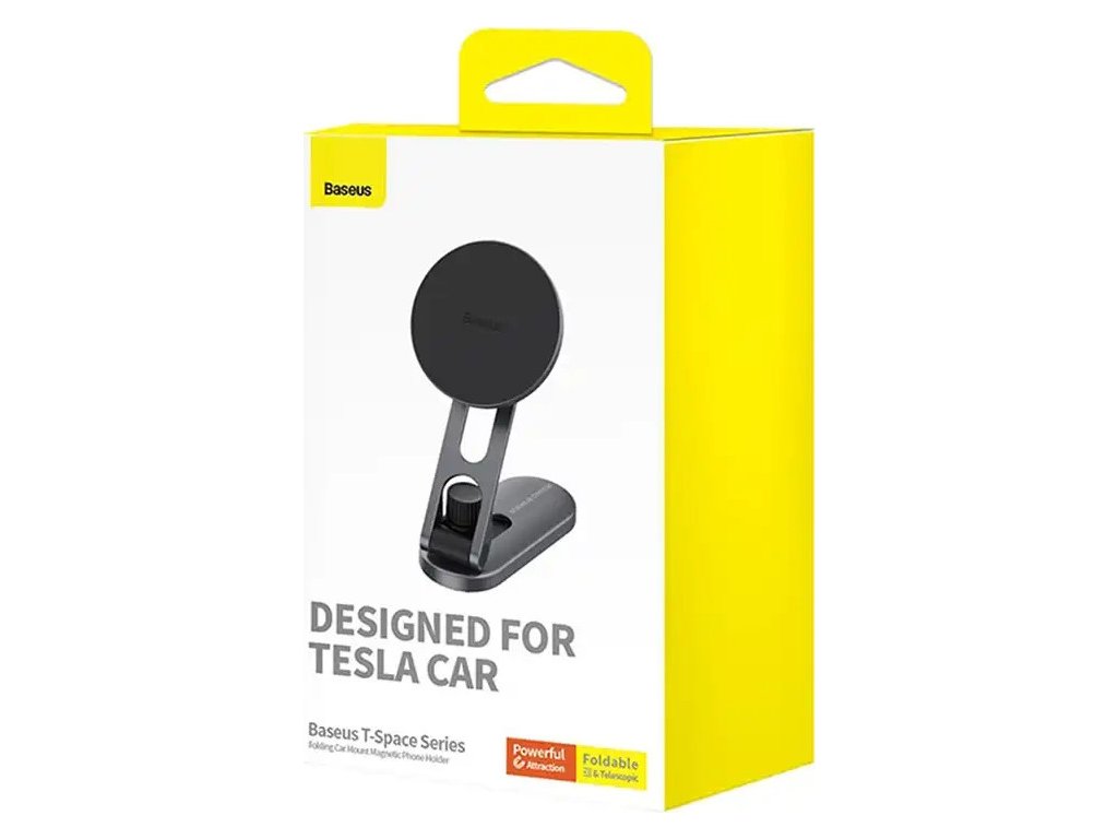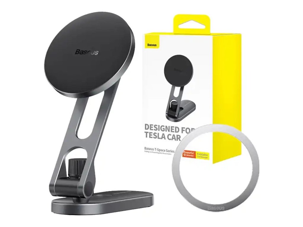 Magnetický držiak do auta Baseus T-Space je určený pre automobily Tesla a môžete ho pripevniť ako na palubnú dosku, tak za ovládací panel. Ponúka tiež funkciu nastavenia. Výrobok sa navyše vyznačuje magnetickým, skladacím prevedením a kovový povrch dokonale splynie s interiérom vášho vozidla Tesla. Je kompatibilný so smartfónmi so systémami iOS a Android. V balení nájdete aj magnetický krúžok, ktorý vám umožní pripevniť k držiaku vybrané modely.