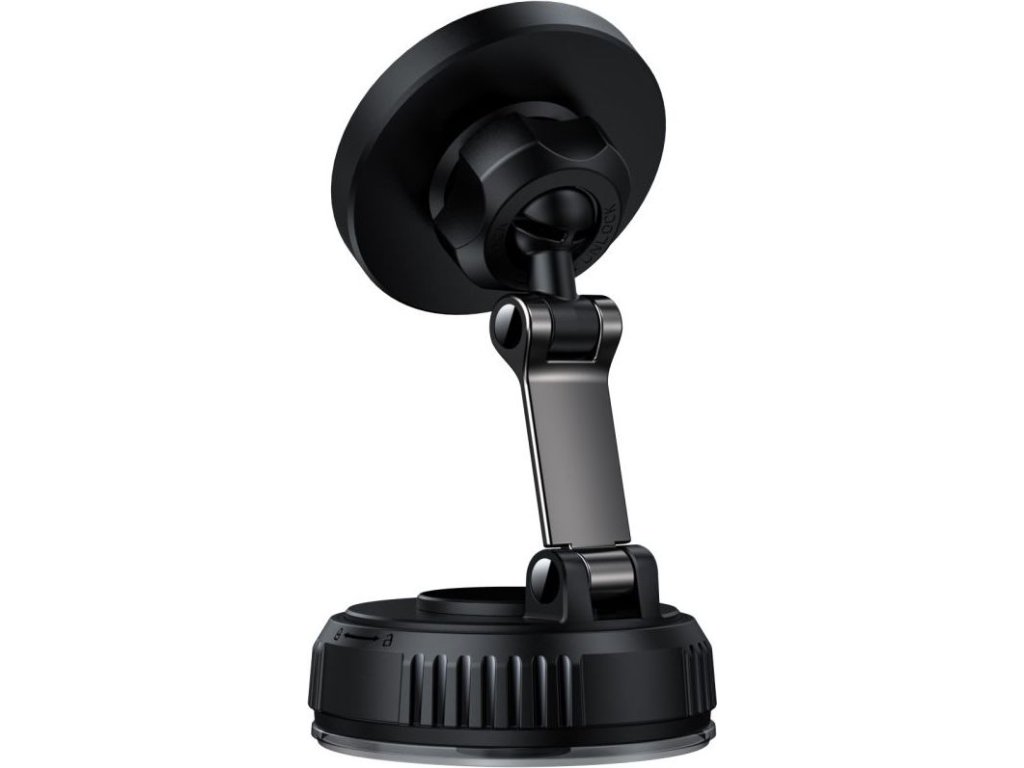 Držák magnetického telefonu Bullet od společnosti Baseus je minimalistický držák připevněný k palubní desce, vyrobený z velmi silné hliníkové slitiny, v černé matné barvě.