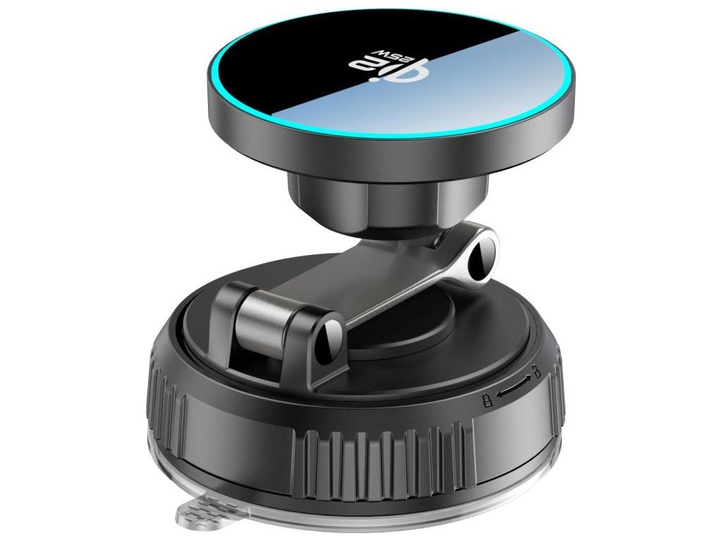 Magnetický držák s přísavkou, vysouvacím ramenem, bezdrátovým dobíjením kompatibilním s Magsafe a vysokým výkonem až 15W. Baleno v blistru SWISSTEN.
