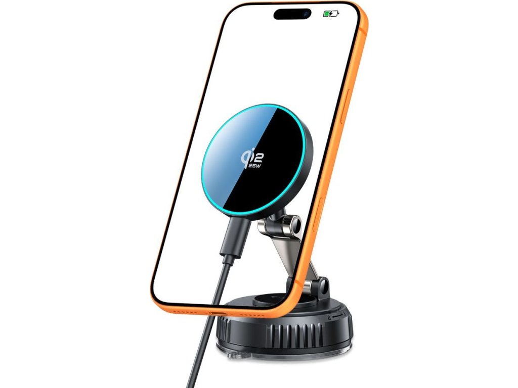 Držák s nastavitelným ramenem umožňuje přesně umístit telefon do optimálního úhlu pohledu a silný magnet zajišťuje bezpečné držení během jízdy, a to i na nerovném povrchu. Nabíjení 25 W znamená, že se baterie vašeho smartphonu rychle dobije i na cestách, bez nutnosti kabelu. Jednoduše držte telefon blízko nabíječky a magnety jej automaticky nastaví do ideální polohy.