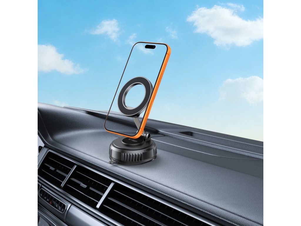 Instalace držáku je rychlá a intuitivní díky silné přísavce, která umožňuje stabilní uchycení na čelní sklo i palubní desku. Univerzální montážní systém usnadňuje přemisťování držáku mezi různými vozidly a jeho použití v jiných prostorách – na stole, v kuchyni nebo v koupelně.