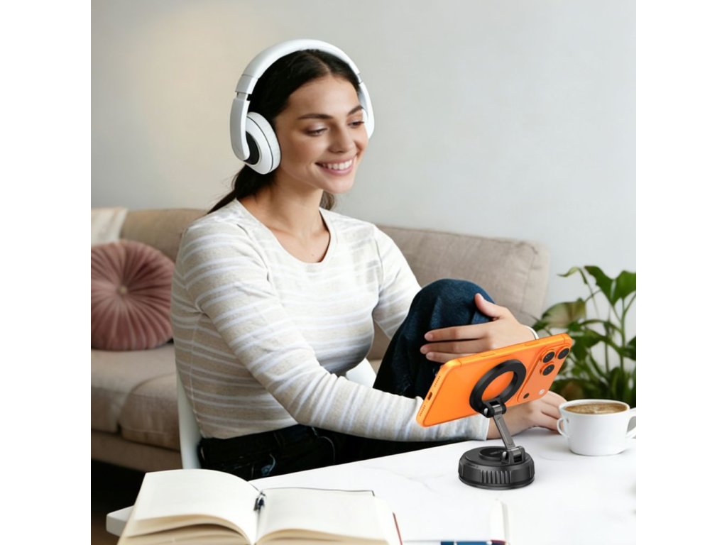 Magnetický držák na telefon, samolepicí, s organizérem kabelů - černý (WMCDO-B1) Objevte vychytávku, která se bude perfektně hodit jak do auta, tak i doma nebo do kanceláře.