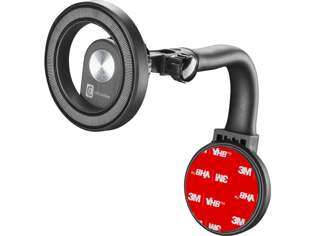 Cellularline Mag Display je magnetický držák určený k upevnění na displej automobilu a navržený pro telefony Apple iPhone s funkcí MagSafe. Základna držáku se vybavena lepící 3M páskou, která zaručuje maximální stabilitu a po odstranění nezanechává žádné stopy. Držák je vybaven modulárním ramenem zakončeným otočným kloubem o 360°, které umožňuje nastavit ideální úhel pohledu. Díky integrovaným magnetům po přiložení telefonu držák během okamžiku pevně uchytí iPhone, stejně jednoduše telefon od držáku odejmete, vše zvládnete pohodlně jednou rukou. Držák je navržen tak, aby pevně držel váš smartphone na místě při sebevětších otřesech způsobených jízdou. S držákem Cellularline Mag Display bude používání vašeho telefonu ve voze bezpečnější a pohodlnější než kdy dříve.