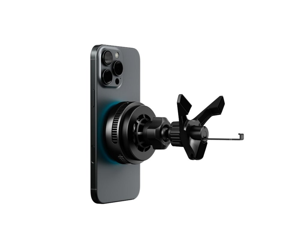 Chladící magnetická bezdrátová nabíječka do auta s oficiální Qi2.2 25 W certifikací a podporou MagSafe. Nabije iPhone z 0 na 50% za 25 minut¹ bez přehřívání díky integrovanému chladícímu čipu. Univerzální montáž do ventilace, na okno i palubní desku. Extra silný magnet. Možnost volby barvy nebo vypnutí podsvícení.