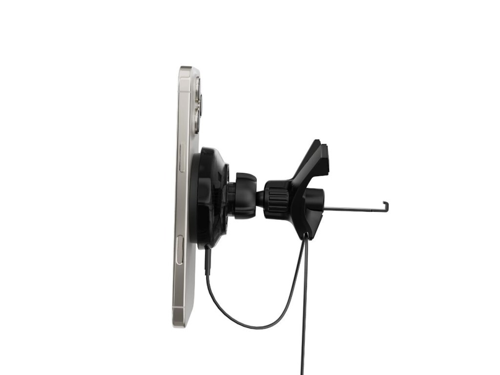 Pomocí silnéhu magnetu, který zvládne unést až 1,6 kg, bude váš telefon vždy v naprostém bezpečí. Žádná ostrá zatáčka, žádný nečekaný výmol – váš iPhone vždy zůstane pevně na svém místě.