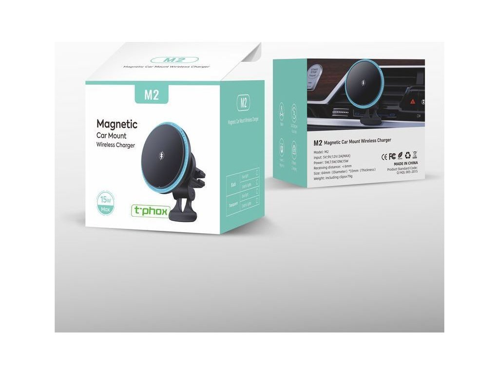 DRŽÁK DO AUTO T-PHOX iMAG MAGNETICKÝ BEZDRÁTOVÝ ČERNÝ