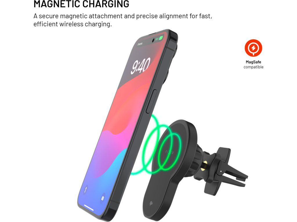 Držák FIXED MagClick 2 představuje novou generaci nabíjení v autě, která kombinuje standard Qi2 s plnou podporou MagSafe. Díky této technologii zajišťuje efektivnější přenos energie a minimalizuje tepelné ztráty, což vede k rychlejšímu a bezpečnějšímu nabíjení vašeho telefonu i během náročných jízd.