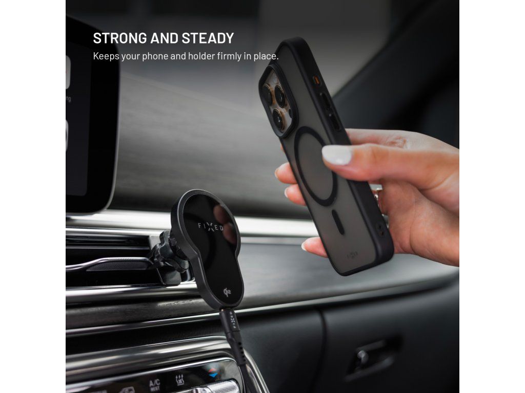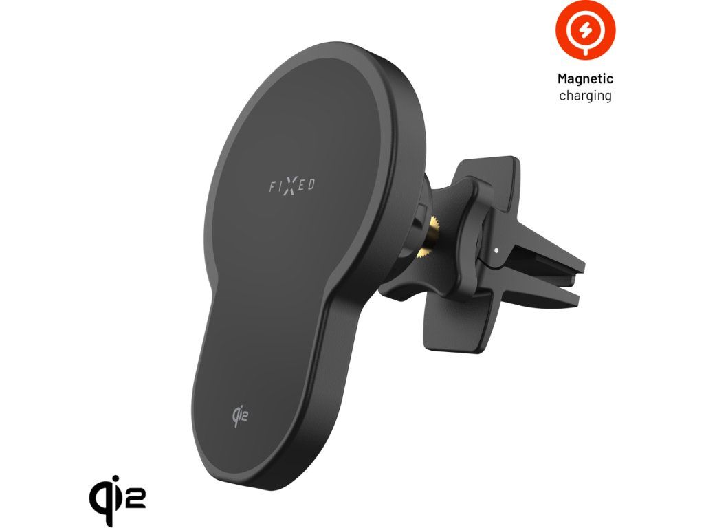 Držák s bezdrátovým nabíjením FIXED MagClick 2 s podporou MagSafe, 15W, Qi2, černý