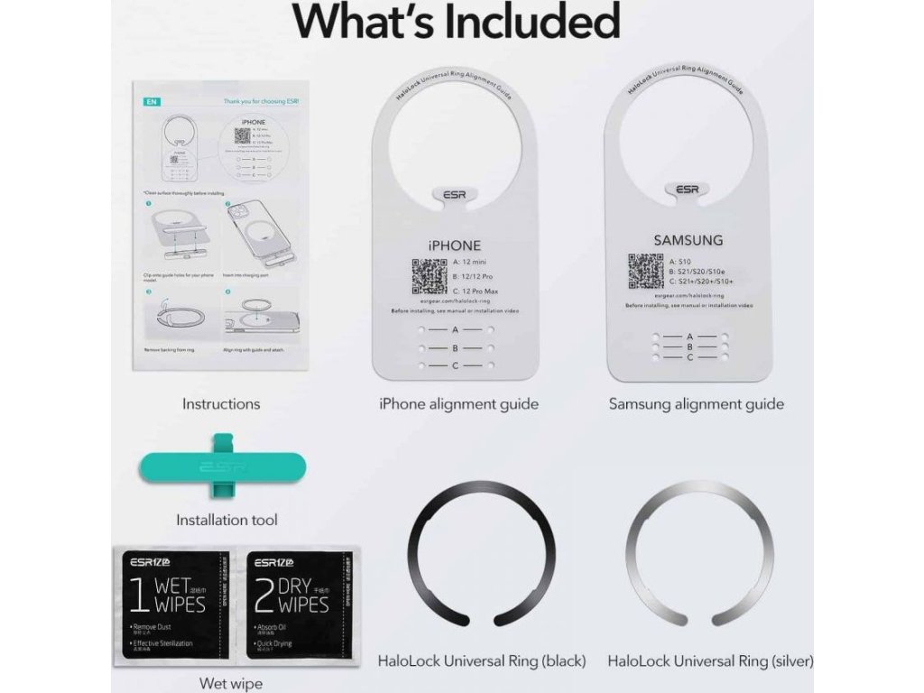 Adaptér pro Magsafe ESR HaloLock Ring pro smartphone 2ks. (černá/stříbrná)