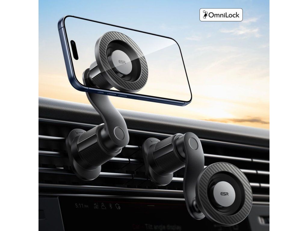 Držák ESR OmniLock Magnetic MagSafe Vent Car Mount je robustní držák do větrací ventilace s přesným magnetickým uchycením MagSafe. Telefon můžete připevnit a odpojit jediným kliknutím – silné magnety zajišťují stabilní a bezpečné držení i na nerovném povrchu.