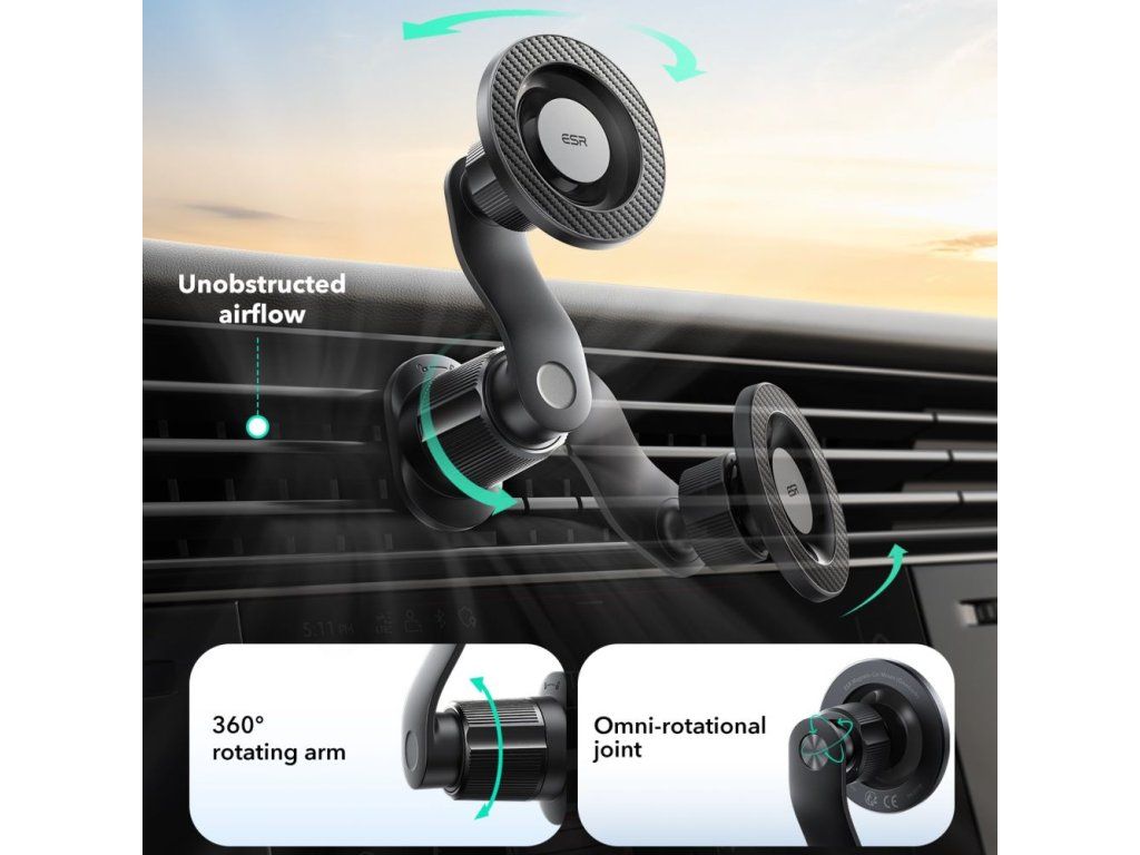 ESR OmniLock Vent je perfektním řešením pro řidiče, kteří chtějí mít svůj telefon neustále na dohled a dosah – rychle se připevňuje na mřížku, zajišťuje bezpečné držení a umožňuje snadné nastavení úhlu. Poznámka: Držák nepodporuje bezdrátové nabíjení.