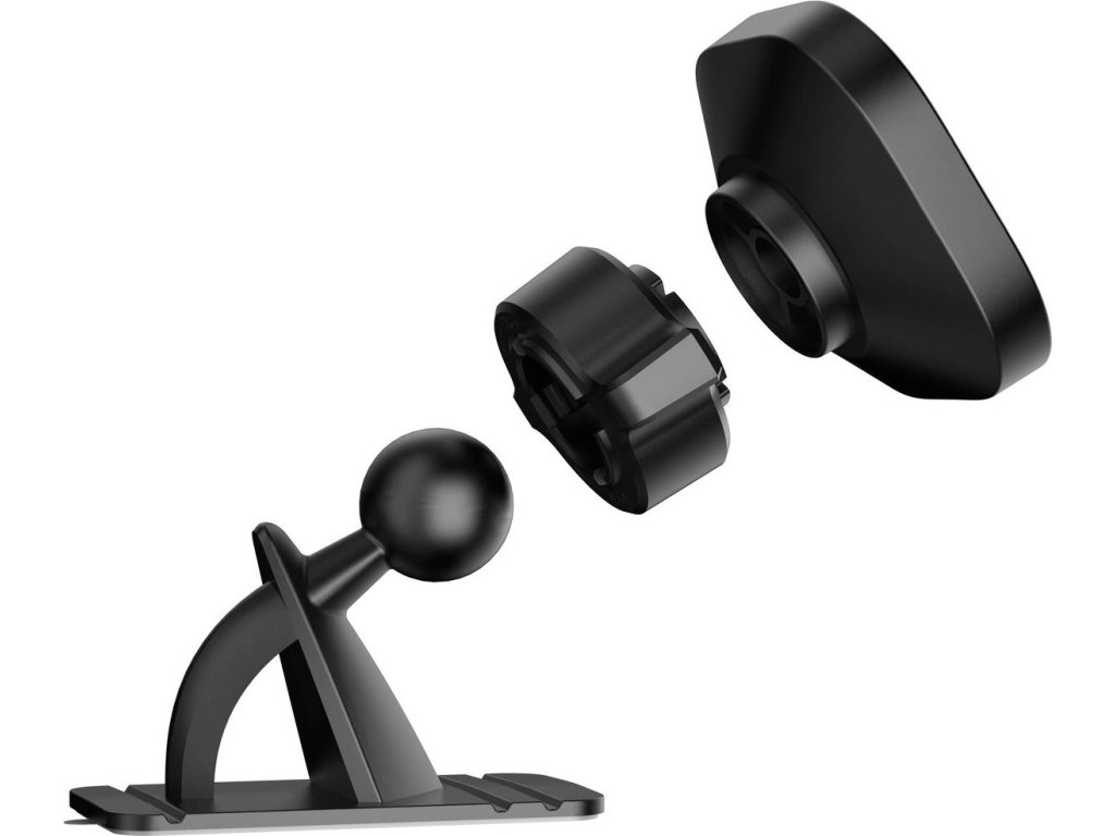 Magnetický držák do auta k montáži na palubní desku vozu. Zařízení se extrémně snadno používá, stačí na něj položit telefon a silné magnety jej okamžitě přitáhnou k sobě. Má skvělé možnosti nastavení (včetně rotace o 360 stupňů) a gumové podložky, díky kterým nepoškrábeme palubní desku. Snadno na něj položíte telefon připojený kabelem k nabíječce.