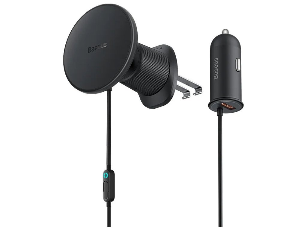 Magnetický držák telefonu do auta Baseus CW01 do větrací mřížky s nabíječkou do auta USB-A, 15 W + 25 W (černý)