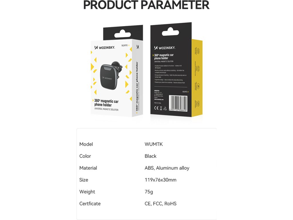 Držák Wozinsky WUMTK byl navržen tak, aby instalace na větrací otvor byla jednoduchá a nezpůsobovala poškrábání. Jedná se o univerzální pomůcku, která je vhodná pro většinu mřížek automobilů.