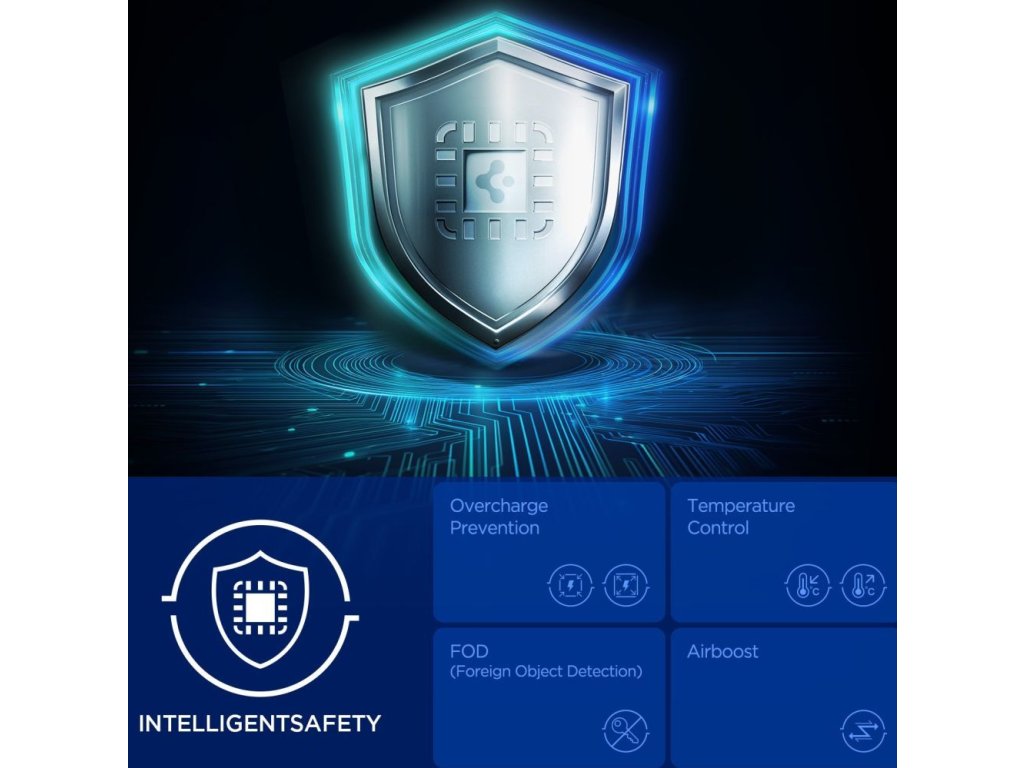 Díky aktivnímu chlazení Peltierovými bateriemi s technologií AirBoost reguluje držák teplotu telefonu a zajišťuje stabilní a rychlé nabíjení i během dlouhých cest a při vysokých teplotách. Systém detekce cizích předmětů (FOD) detekuje přítomnost kovových nebo nežádoucích předmětů v nabíjecí zóně, zatímco funkce prevence přebíjení chrání baterii telefonu před přebíjením, čímž zvyšuje bezpečnost a životnost zařízení.